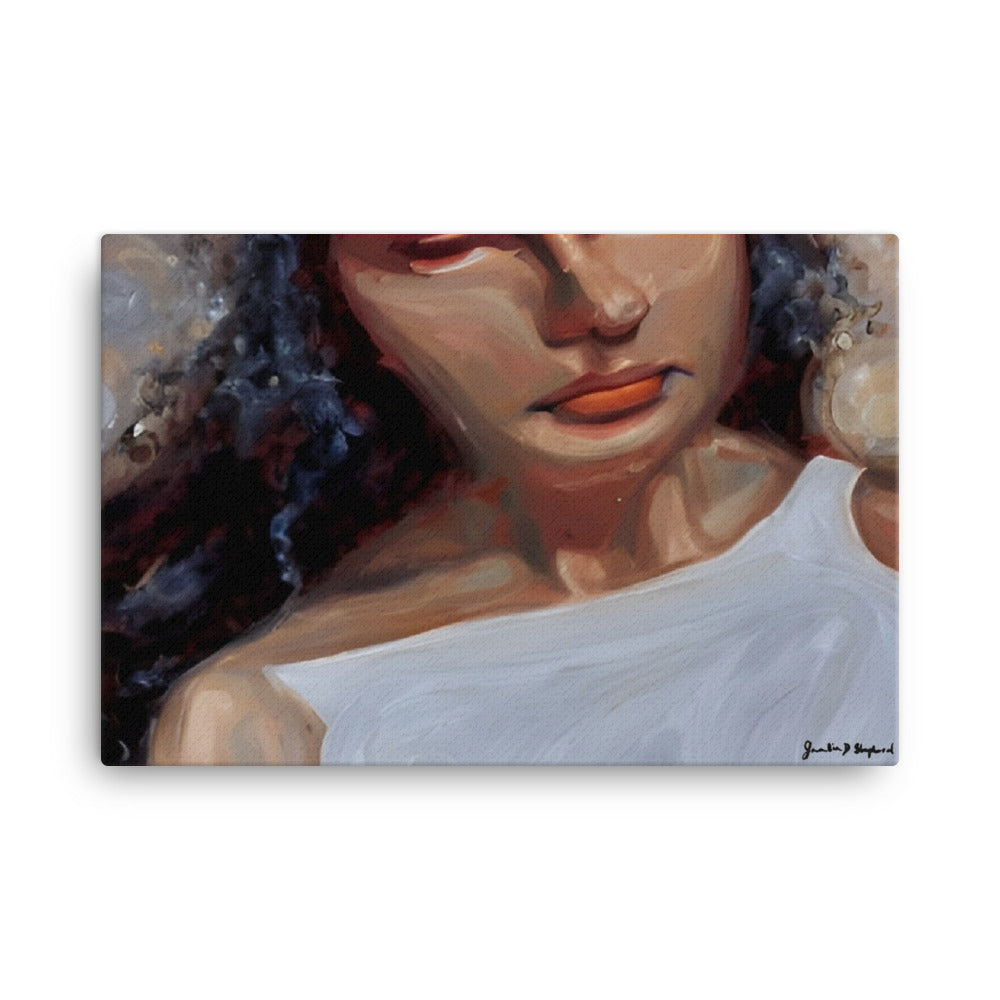 • Hand-stretched over solid wood stretcher bars