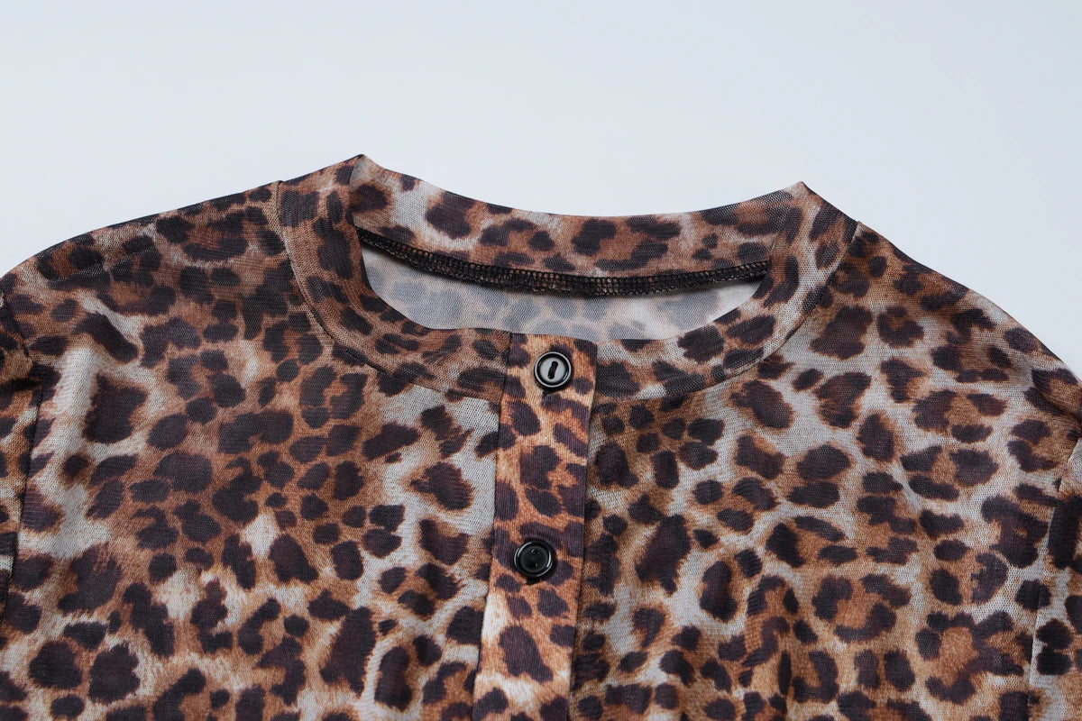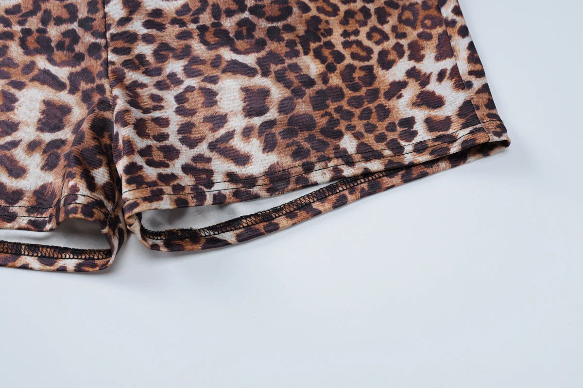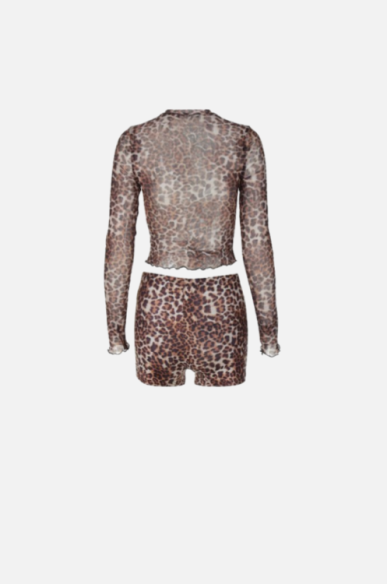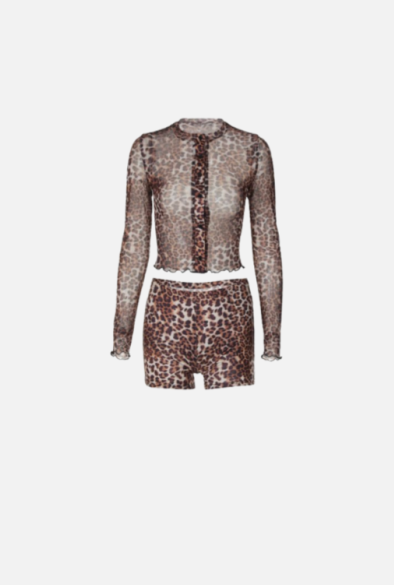 Villa Blvd Leopard Mesh Shirt + Shorts Sets